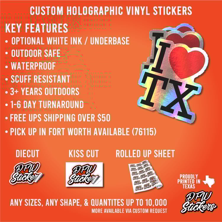 Holographic  |  Chrome  |  Clear  | Spot Gloss |  And More!