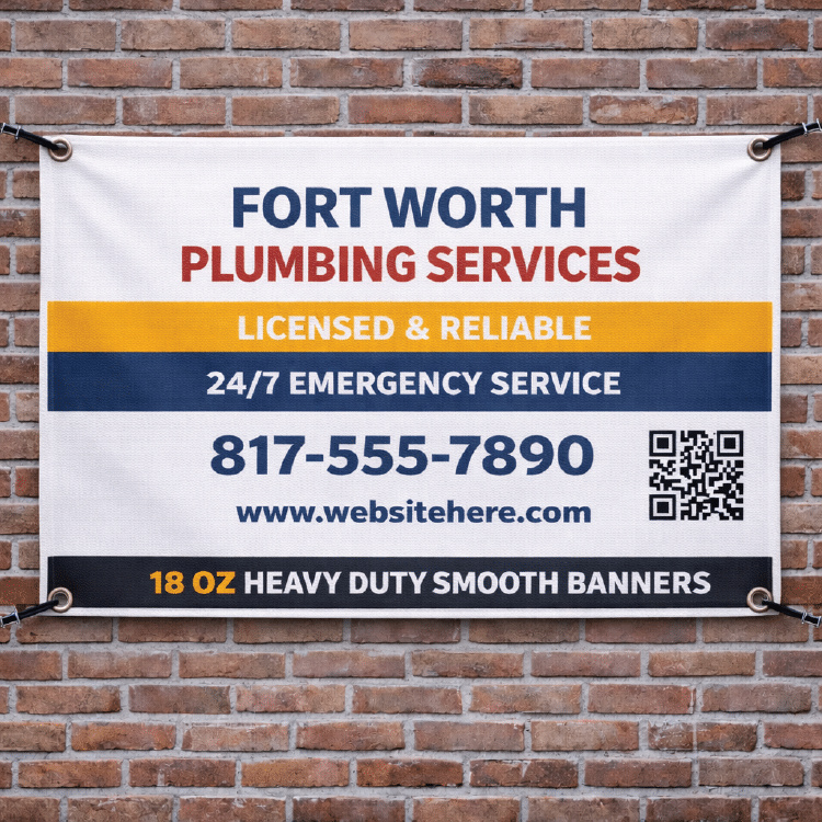 Our 18oz banners are in a class of their own. The smoothest, heaviest material we carry means virtually zero stretch, a perfectly flat hang, and print clarity that lighter vinyls simply can’t match, available single or double sided. Reinforced edges on all four sides handle the most demanding installations, from high tension pole mounts to permanent outdoor displays. Choose your grommet placement, add pole pockets, or go double-sided for maximum visibility from every angle.